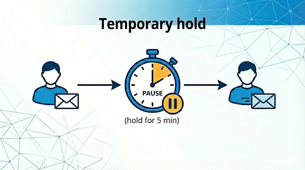 送信したメールをカスタマ可能な期間(例:5分間)自動的に保留します。ミスが起きる場合、すぐに配信を停止することができます。